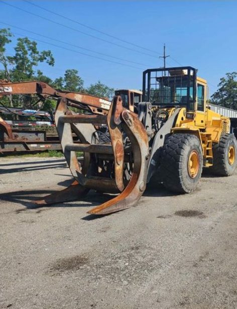 04 Volvo L150E wheel loader with large grapple. Can lift approximately 40,000 lb. Motor is strong transmission is strong Hydraulics are strong. Two new hydraulic pumps. Tires are good. Ready to work. Got out of business so I don\’t need this machine .